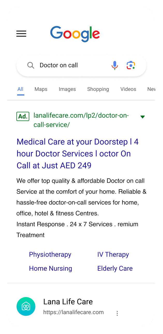 Lana Life Care is a leading provider of skilled and compassionate home health care services in the UAE and offers a wide range of services like physiotherapy, doctor on call, IV therapy etc. WAC helped Lana Life Care expand their business through digital marketing by developing and implementing a comprehensive strategy that included SEO, PPC, social media, and content marketing. As a result, Lana Life Care experienced a significant increase in website traffic, leads, and sales.